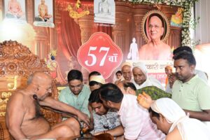 धर्म सभा के पूर्व श्री आदिनाथ भगवान का अभिषेक एवं शांतिधारा हुई। इसके बाद पूर्वाचार्यों के चित्र अनावरण दीप प्रवज्जलन, आचार्य श्री के चरण प्रक्षालन और विशेष...