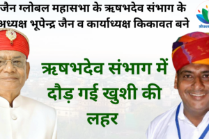 श्री दिगंबर जैन ग्लोबल महासभा के संस्थापक ट्रस्टी एवं राष्ट्रीय अध्यक्ष जमना लाल हपावत मुंबई ने दिगंबर जैन समाज के अध्यक्ष भूपेंद्र कुमार जैन को ऋषभदेव संभाग...