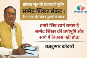 सम्मेद शिखर पर श्रीफल जैन न्यूज़ की मुहिम ,जैन समाज के शिखर पुरुषों से संवाद श्रीफल जैन न्यूज़ संवाददाता – राजकुमार जी, सम्मेद शिखर को लेकर आंदोलन कर रहे...