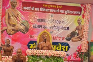 आचार्यश्री वसुनंदी महाराज अपने 21 शिष्यों के साथ गांव विरोधा पंचायत मनियां अपनी जन्मस्थली पहुंचे। जहां भव्य सिंह द्वार का निर्माण समाज ने कराया है। जिसका...