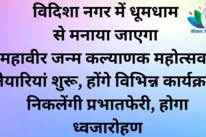 विदिशा नगर अपने अंतिम शासन नायक महावीर भगवान के जन्मकल्याणक महोत्सव को धूमधाम से मनाने के लिए तैयार है। इस अवसर पर विभिन्न कार्यक्रम होंगे। विभिन्न सेवाभावी...
