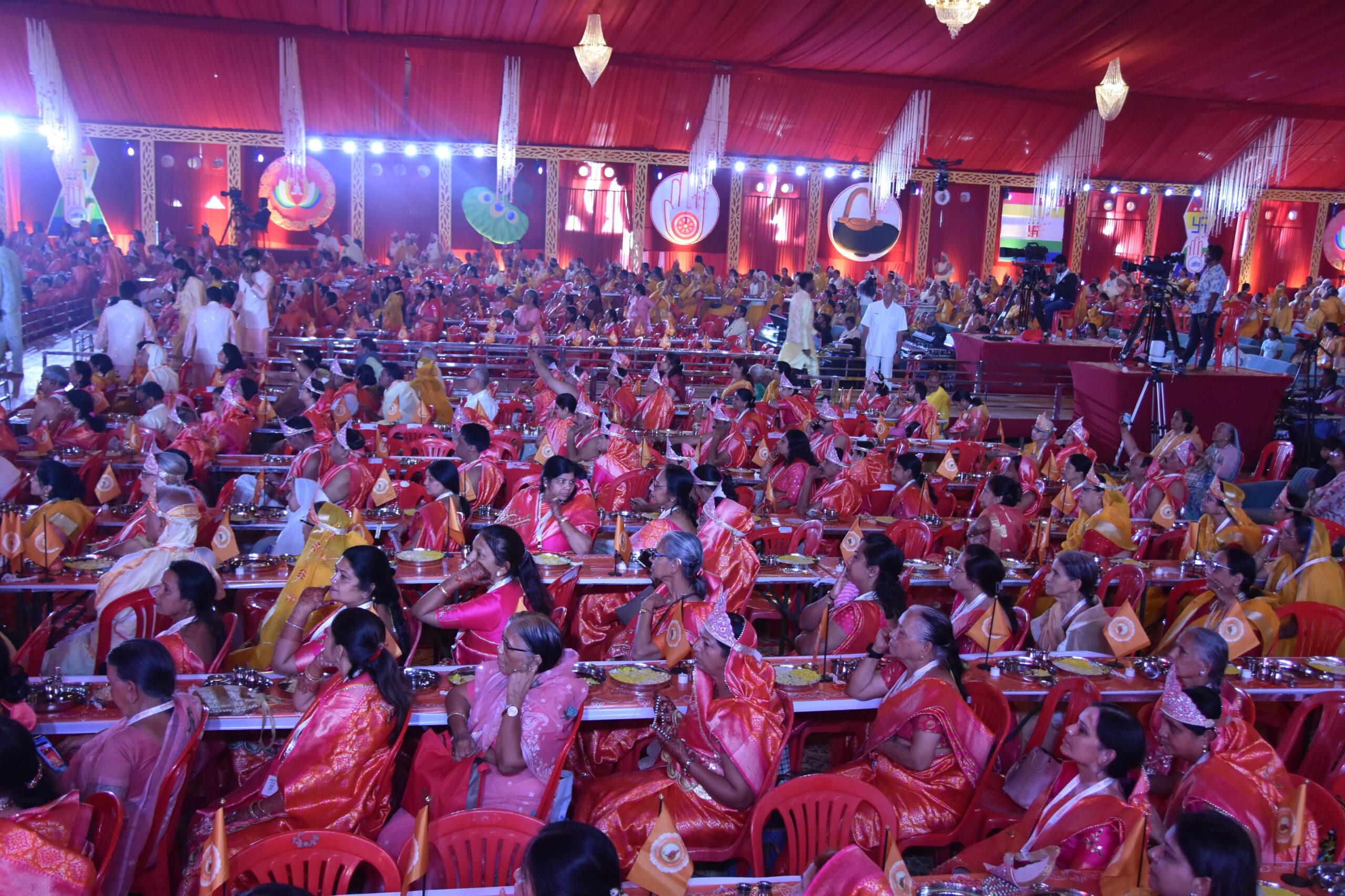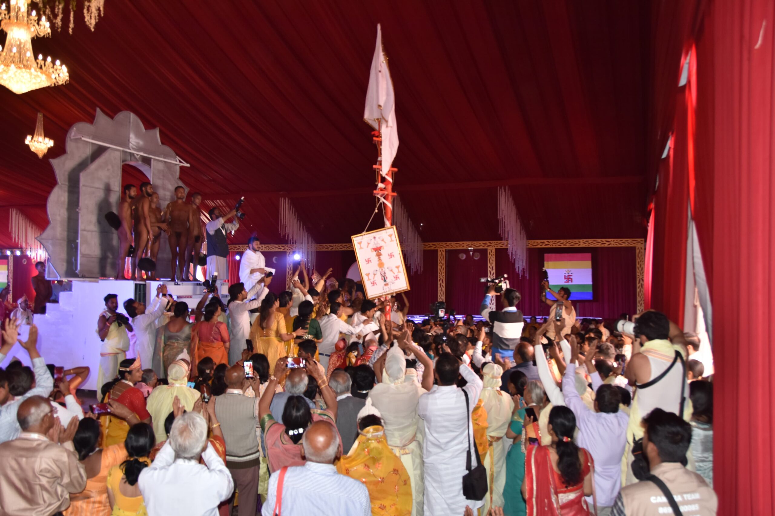 इंदौर। देश के सबसे बड़े व भव्य पंचकल्याणक महोत्सव की शुरूआत बुधवार को सुमतिधाम पर चर्याशिरोमणि श्री 108 विशुद्धसागर जी महाराज के सान्निध्य में हुई। सुबह के सत्र में सुमतिधाम घट स्थापना की भव्य शोभायात्रा व कलश यात्रा निकाली गई। जिसमें सभी इंद्र-इंद्राणी बग्घियों पर सवार थे तो वहीं बैंड़-बाजों की स्वरलहरियों पर महिलाएं मंगल कलश हाथों में लिए चल रही थीं। घट स्थापना की निकली शोभायात्रा मेें राजकमल बैंड के साथ ही हाथी, घोड़े, ऊंट भी यात्रा के अग्र भाग में शामिल थे। वहीं ढोलक की थाप पर महिलाएं नाचते व मंगल गीत गाते हुए चल रही थीं। पंचकल्याणक महामहोत्सव समिति आयोजक मनीष-सपना गोधा ने बताया कि 6 से 11 मार्च तक आयोजित होने वाले देश के सबसे बड़े पंचकल्याणक महोत्सव में सुबह 11 बजे आचार्य विशुद्ध सागर महाराज के सान्निध्य एवं प्रतिष्ठाचार्य प्रदीपकुमार जैन मधुर (मुंबई), सह-प्रतिष्ठाचार्य चंद्रकांत गुंडप्पा इंड़ी (कर्नाटक), पं. नितिनजी झांझरी (इन्दौर), विधानाचार्य पीयूष प्रसून (सतना) एवं तरूण भैय्याजी (इन्दौर) के सान्निध्य में पाद प्रक्षालन, जिनवाणी भेंट, कलश पूजन, ध्वजारोहण की सभी विधियां संपन्न की गईं। पंचकल्याणक महोत्सव के मुख्य लाभार्थी मनीष-सपना गोधा परिवार थे। ध्वजारोहण का लाभ बसंतीलाल विजया डोसी, प्रफुल्ल लता जैन, राजेंद्र-मंजू झांझरी, विजय-नीलम चौधरी, जिनेश-सुनीता बडज़ात्या ने लिया तो वहीं पाद-पक्षालन में रमेश कुमार गुणमाला काला, अभिषेक-श्रिषिका एवं आशीष-स्वाति लाभार्थी थे। आचार्यश्री को जिनवाणी भेंट करने का सौभाग्य कमलेश-सोनाली पाटोदी, अरिन-अनवि (फरीदाबाद) को मिला। मण्डप उद्घाटनकर्ता का लाभ महेंद्र-अजीत टोंग्या (भानपुरा), रतनलाल-महावीर प्रसाद झांझरी, अभिषेक-आशीष काला ने लिया।