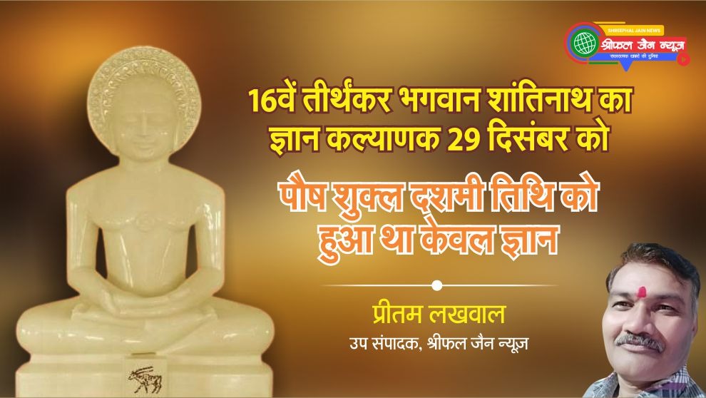 जैन धर्म के 16वें तीर्थंकर भगवान शांतिनाथ का ज्ञान कल्याणक इस बार 29 दिसंबर को आ रहा है। भगवान शांतिनाथ ने पौष शुक्ल दशमी तिथि को केवल ज्ञान प्राप्त किया था। जैन धर्म ग्रंथों के अनुसार भगवान शांतिनाथ जी का ज्ञान कल्याणक (केवलज्ञान) पौष मास, शुक्ल पक्ष, दशमी तिथि को हुआ था। श्रीफल जैन न्यूज की विशेष श्रृंखला में आज पढ़िए, उपसंपादक प्रीतम लखवाल की यह संकलित और संपादित रिपोर्ट…