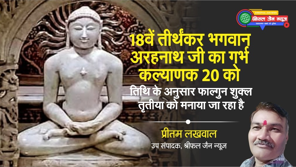 जैन धर्म के 18वें तीर्थंकर भगवान अरहनाथ जी का गर्भ कल्याणक 20 फरवरी को महोत्सव के रूप में मनाया जा रहा है। श्री दिगंबर जैन मंदिरों में श्रद्धा, आस्था और भक्ति के साथ हर्ष और उल्लास के साथ भगवान का यह कल्याणक फाल्गुन शुक्ल तृतीया के दिन मनाया जाता है। श्रीफल जैन न्यूज की विशेष शृंखला में आज पढ़िए, उपसंपादक प्रीतम लखवाल की यह खबर…