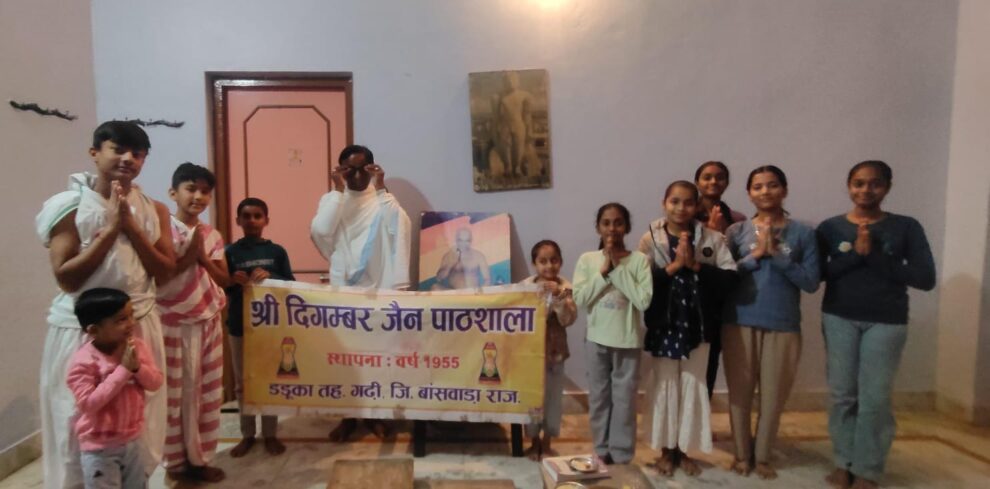 दिगंबर जैन पाठशाला डडूका के बच्चों ने पाठशाला प्रेरक अजीत कोठिया के निर्देशन में 15 वें तीर्थंकर भगवान धर्मनाथ के कैवल्य ज्ञान कल्याणक, षोडशकारण माह, पूर्णिमा पर दिगम्बर जैन पाठशाला के बच्चो ने सामूहिक पूजा की। डडूका से पढ़िए, यह खबर…