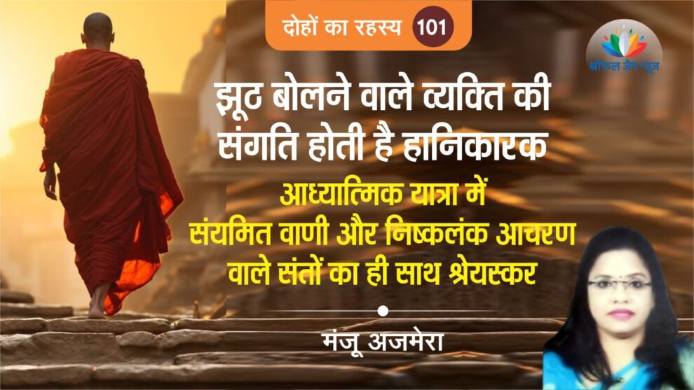 अतः आध्यात्मिक यात्रा में सच्चे ह्रदय, संयमित वाणी और निष्कलंक आचरण वाले संतों का ही साथ करना श्रेयस्कर होता है।