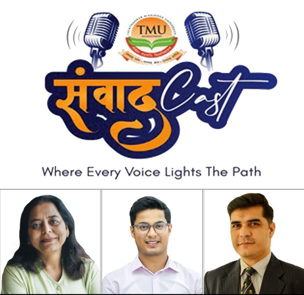 टीएमयू के कुलपति प्रो. वीके जैन ने आशा जताई, टीएमयूू संवादकास्ट छात्रों, शिक्षकों और समाज के लिए ज्ञान का प्रकाश स्तंभ बनेगा। साथ ही यह मंच वैश्विक स्तर तक टीएमयू की आवाज़ पहुंचाएगा। डीन एकेडमिक्स, डॉ. मंजुला जैन ने कहा कि संवादकास्ट केवल एक पॉडकास्ट नहीं, बल्कि विश्व को टीएमयू की अकादमिक आवाज़ के तौर पर पहचान दिलाएगा। उन्होंने कहा, यह मंच नेतृत्व, नवाचार, शिक्षा, संस्कृति, सतत विकास और जीवन अनुभवों पर आधारित अर्थपूर्ण चर्चाओं को आगे बढ़ाएगा। स्पॉटिफाई जैसी वैश्विक संस्था की सहभागिता को उन्होंने अकादमिक संवाद के वैश्विक विस्तार का प्रतीक बताया। इसके पश्चात टीएमयू संवादकास्ट के पहले एपिसोड की रिकॉर्डिंग आरंभ हुई, जिसमें मेजर (डॉ.) मोहम्मद अली शाह ने एंकर की भूमिका निभाई। मेजर शाह ने सुश्री विनीता दीक्षित से नेतृत्व, संवाद, भविष्य की शिक्षा, पॉडकास्ट की भूमिका और युवाओं के लिए आवश्यक कौशलों पर गहन चर्चा की।