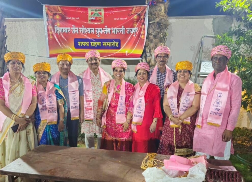 जयपुर। दिगम्बर जैन सोशल ग्रुप जैन भारती के तत्वावधान में रविवार को रोहन फार्म हाउस, मानसरोवर पर ईसर संग गणगौर कार्यक्रम उत्साह और विविध आयोजनों के साथ सम्पन्न हुआ। ग्रुप की अध्यक्ष प्रमिला आलोक शाह द्वारा नवगठित कार्यकारिणी को शपथ दिलाई गई और वर्ष 2025 का ग्रुप का पहला कार्यक्रम आयोजित किया गया।