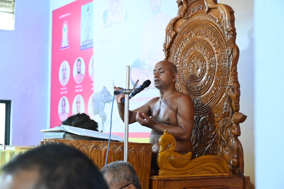 नांदणी मठ। पर्वराज पर्युषण महापर्व पर आयोजित ” आध्यात्मिक श्रावक संयम-साधना संस्कार शिविर” में शताब्दी देशनाचार्य अध्यात्मयोगी आचार्य रत्न श्री विशुद्धसागर जी गुरुदेव ने कहा कि पर-पदार्थ (धन, सम्पत्ति, धरती, भवन, वस्त्रादि) कुछ भी मेरा नहीं है। आत्म द्रव्य भिन्न है, शरीर भिन्न है। तन भी भी मेरा नहीं है। ध्रुवधाम टंकोत्कीर्ण भगवानात्मा से संसार के सर्व-पदार्थ अत्यंत भिन्न हैं। मैं पर का नहीं, पर मेरे नहीं। मैं अकेला था, अकेला हूं और हमेशा अकेला ही रहूंगा। मुझमें पर नहीं, पर में मैं नहीं। मैं पर का नहीं, पर मेरे नहीं।