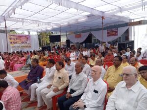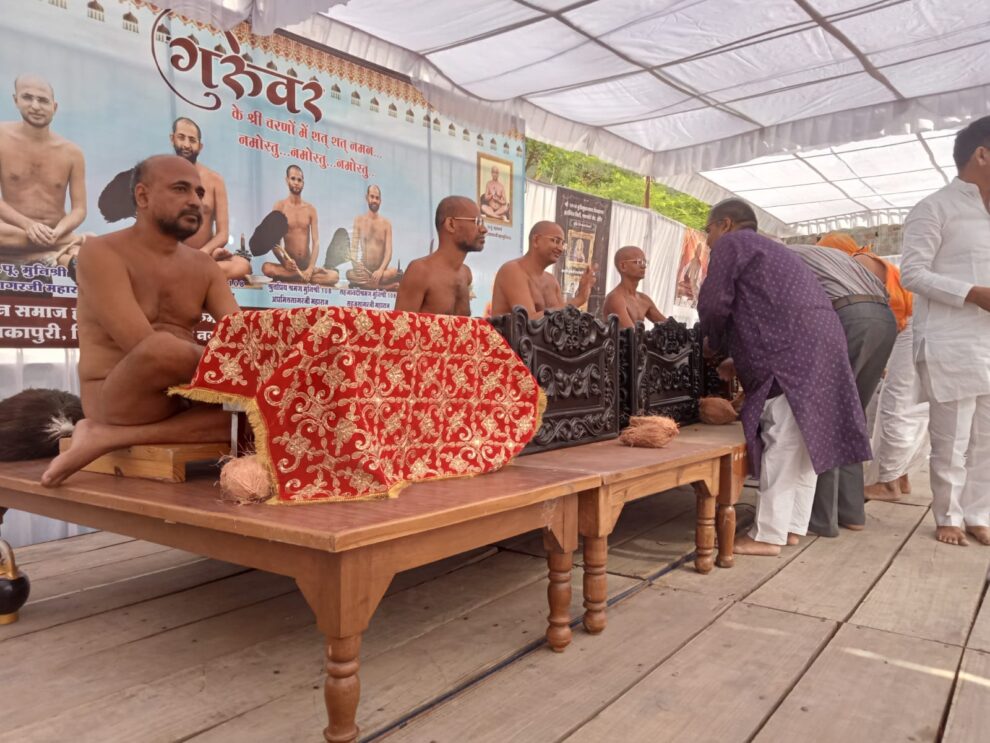 इंदौर। आदिनाथ से महावीर जयंती तक निकाली जा रही धार्मिक पदयात्रा और पालकी यात्रा के हाईलिंक में समापन के बाद निर्माणाधीन दिगंबर जैन मंदिर के समीप धर्मसभा का आयोजन किया गया। इस अवसर पर मंच पर अंतर्मुखी मुनिश्री पूज्यसागर जी, मुनिश्री आदित्यसागर जी, मुनिश्री अप्रमितसागर जी, मुनिश्री सहजसागर जी ससंघ विराजित रहे। आचार्य भगवंतों के चित्र अनावरण के साथ दीप प्रज्वलन किया गया। इस कार्य के लिए संजय पाटोदी, संजय बड़जात्या, गिरीश रारा सहित अन्य समाजजन मौजूद रहे। इस अवसर पर निर्माणाधीन मंदिर और वेदी पर प्रतिमाएं विराजित करने के लिए बोलियां लगाई गईं। मूलनायक भगवान की प्रतिमा की बोली सवा 11 लाख में विपिन भाई ने ली। इसके अलावा अन्य प्रतिमाओं की बोली में भी समाजजनों ने हिस्सा लेकर पुण्यार्जन किया। महिला मंडल ने भी बोलियों में हिस्सा लिया। मंचासीन मुनिराजों का सर्वप्रथम हाईलिक दिगंबर जैन कमेटी की ओर से पाद प्रक्षालन किया गया। समाजजनों और महिला मंडल की ओर मुनिराजों को श्रीफल और शास्त्र भेंट किया गया। इस अवसर पर श्री दिगंबर जैन सामाजिक संसद के नवीन अध्यक्ष आनंद गोधा, नवीन गोधा, वरिष्ठ समाज सेवी कैलाश वेद, संजय बडजात्या, दिलीप जैन, गिरीश रारा, जीतेंद्र पाटोदी लोकेंद्र गंगवाल, नीलेश बडजात्या, विकास रारा, मयंक जैन, संजय बडजात्या, जीतेंद्र पोरवाल, मयंक काला, टीके वेद, नकुल पाटोदी, अनूप जैन सहित भोपाल, महाराष्ट्र, गुजरात आदि स्थानों से समाजजन भी मौजूद रहे।