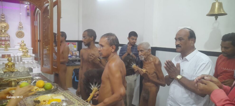 इंदौर। पट्टाचार्य श्री विशुद्ध सागर जी के शिष्य उपाध्याय श्री विभंजनसागर जी एवं मुनि श्री विश्वज्ञेय सागर जी का शुक्रवार को सुबह 6.30 बजे आदिनाथ दिगंबर जैन चैत्यालय स्कीम नंबर 71 में श्रीजी के दर्शनार्थ आगमन हुआ। चैत्यालय के महेंद्र टी जैन एवं सुनील जैन ईशान ने बताया कि सनत जैन आरती एवं अन्य भक्तों ने पूज्य उपाध्याय संघ की अगवानी कर चरण प्रक्षालन किए।