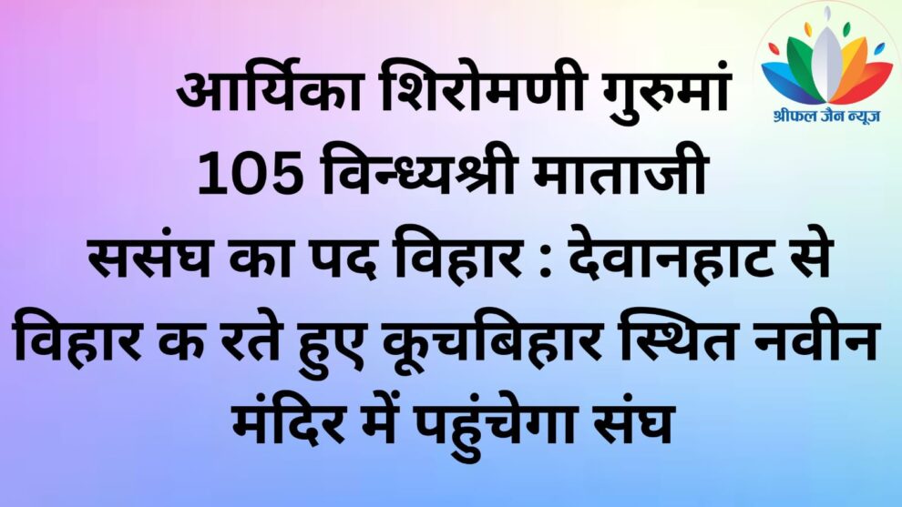आर्यिका शिरोमणी गुरुमां 105 विन्ध्यश्री माताजी ससंघ का पद विहार : देवानहाट से‌ विहार करते हुए कूचबिहार स्थित नवीन मंदिर में पहुंचेगा संघ
