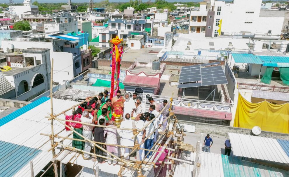 42 फिट ऊँचे शिखर पर ध्वजा फहराई गई