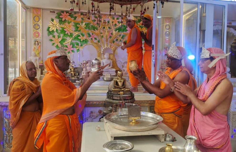 झुमरीतिलैया। श्री दिगंबर जैन मंदिर में दशलक्षण महापर्व का दूसरा दिन उत्तम मार्दव धर्म के रूप में मनाया गया, जिसमें कुंडलपुर से आई पूज्य आचार्य श्री विद्यासागर जी महामुनिराज की परम शिष्या गुणमाला दीदी ओर चंदा दीदी के सान्निध्य एवं नेतृत्व में भव्यातिभव्य श्री जी की आराधना की गई। नया मंदिर जी में प्रथम अभिषेक एवं शांतिधाराका सौभाग्य बिमल-विकाश सेठी को एवं बड़ा मंदिर जी के मूल वेदी में प्रथम अभिषेक और शांतिधारा का सौभाग्य राकेश-आदित्य जैन छाबडा को और 1008 चन्द्रप्रभु भगवान का श्री विहार और पाण्डुकशिला पर प्रथम अभिषेक और शांतिधारा का सौभाग्य अनिल-सिद्धार्थ जैन ठोल्या और दूसरी वेदी पर 1008 आदिनाथ भगवान की वेदी में प्रथम अभिषेक ओर शांतिधारा का सौभाग्य सुरेन्द-सौरभ जैन काला को मिला। इसी के साथ पुण्यार्जक परिवारों ललित-नीलम जैन सेठी की ओर से विभिन्न धार्मिक क्रियाओं को संपादित करते हुए अभूतपूर्व उत्साह के साथ विधान की पूजन करते हुए श्री जी के चरणों में अर्घ्य समर्पित किया।