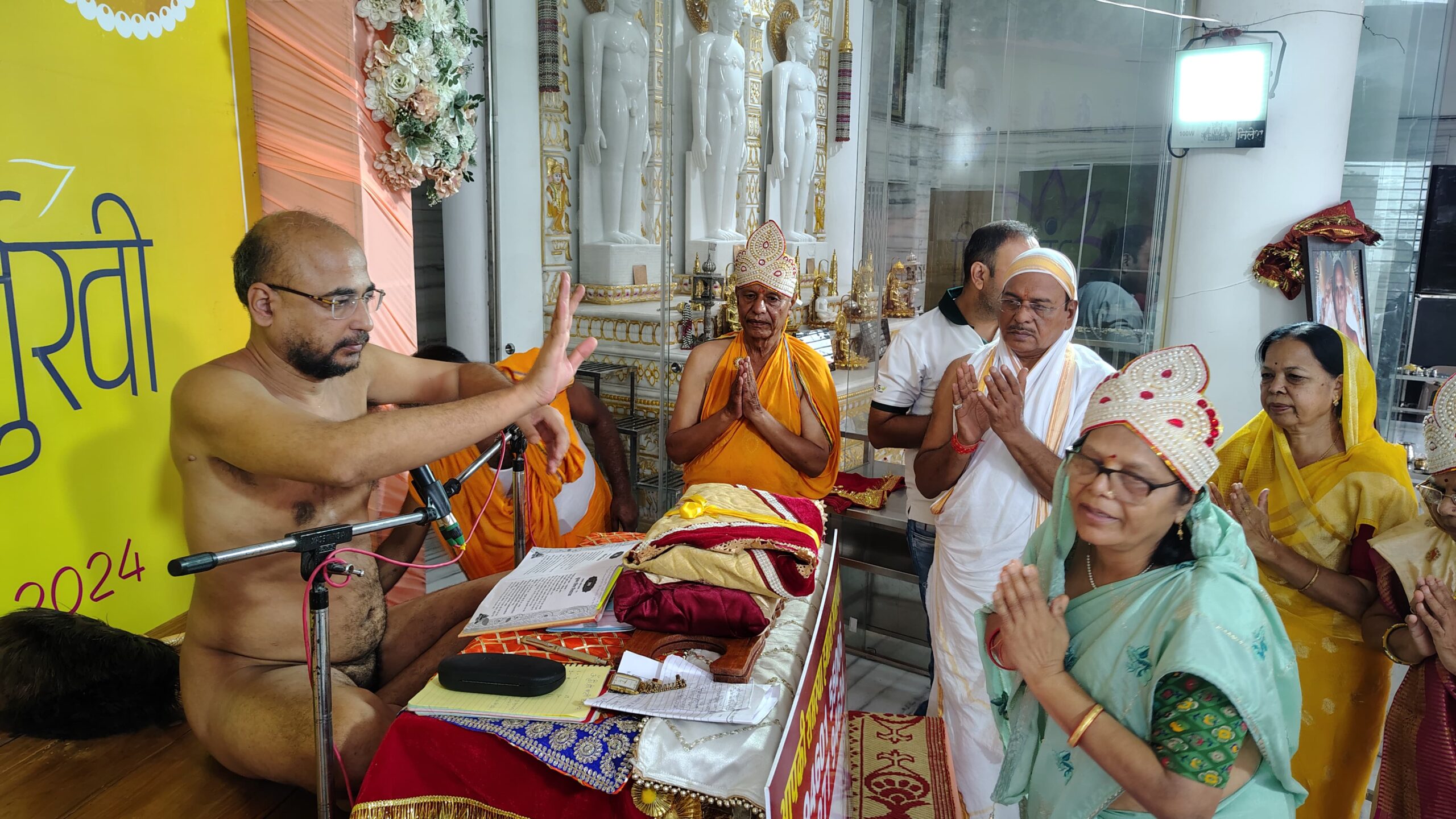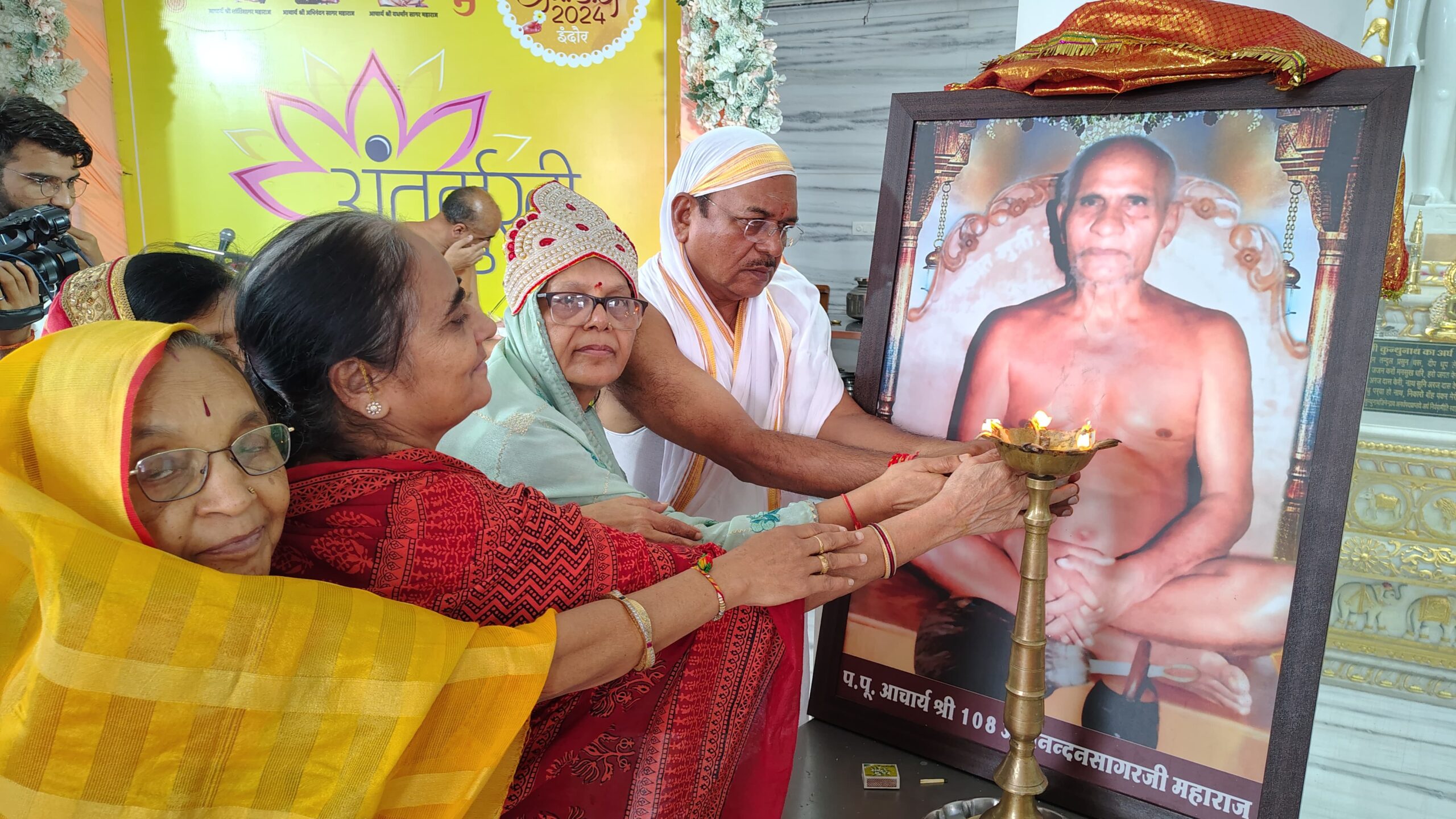 संविद नगर, कनाडिया रोड स्थित आदिनाथ जिनालय में अंतर्मुखी मुनि पूज्य सागर महाराज के धर्म प्रभावना रथ के चौथे पड़ाव में 12 दिवसीय वृहद महामंडल विधान का आयोजन नवें दिन किया गया। इस अवसर पर मुख्य पुण्यार्जक लक्ष्मीचंद्र जैन, मनीषा जैन, मनोज जैन, दीपा जैन और शौर्य जैन परिवार ने भक्तामर काव्य की 33, 34, 35, और 36 श्लोकों की आराधना करते हुए 224 अर्घ्य समर्पित किए। इस अवसर पर मुनि श्री प्रवचन भी हुए। पढ़िए यह विशेष रिपोर्ट…