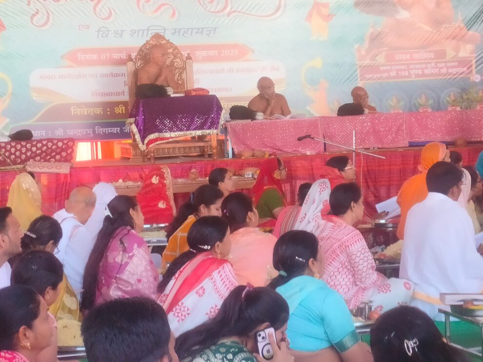 इसके पूर्व अंतरराष्ट्रीय ख्याति प्राप्त प्रतिष्ठाचार्य पंडित हंसमुख जैन और बाल ब्रह्मचारिणी वीणा दीदी के निर्देशन में अष्टान्हिका पर्व में श्री पुण्य सागरजी के संघस्थ परम तपस्वी मुनिराज श्री महोत्सव सागरजी महाराज और श्री उत्सव सागरजी व श्राविका श्रेष्ठ तारादेवी जैन (अहमदाबाद) वालों का आठ उपवास की साधना निरंतर चलने पर आचार्यश्री वर्धमान सागरजी को श्रीफल भेंटकर आशीर्वाद प्राप्त किया।