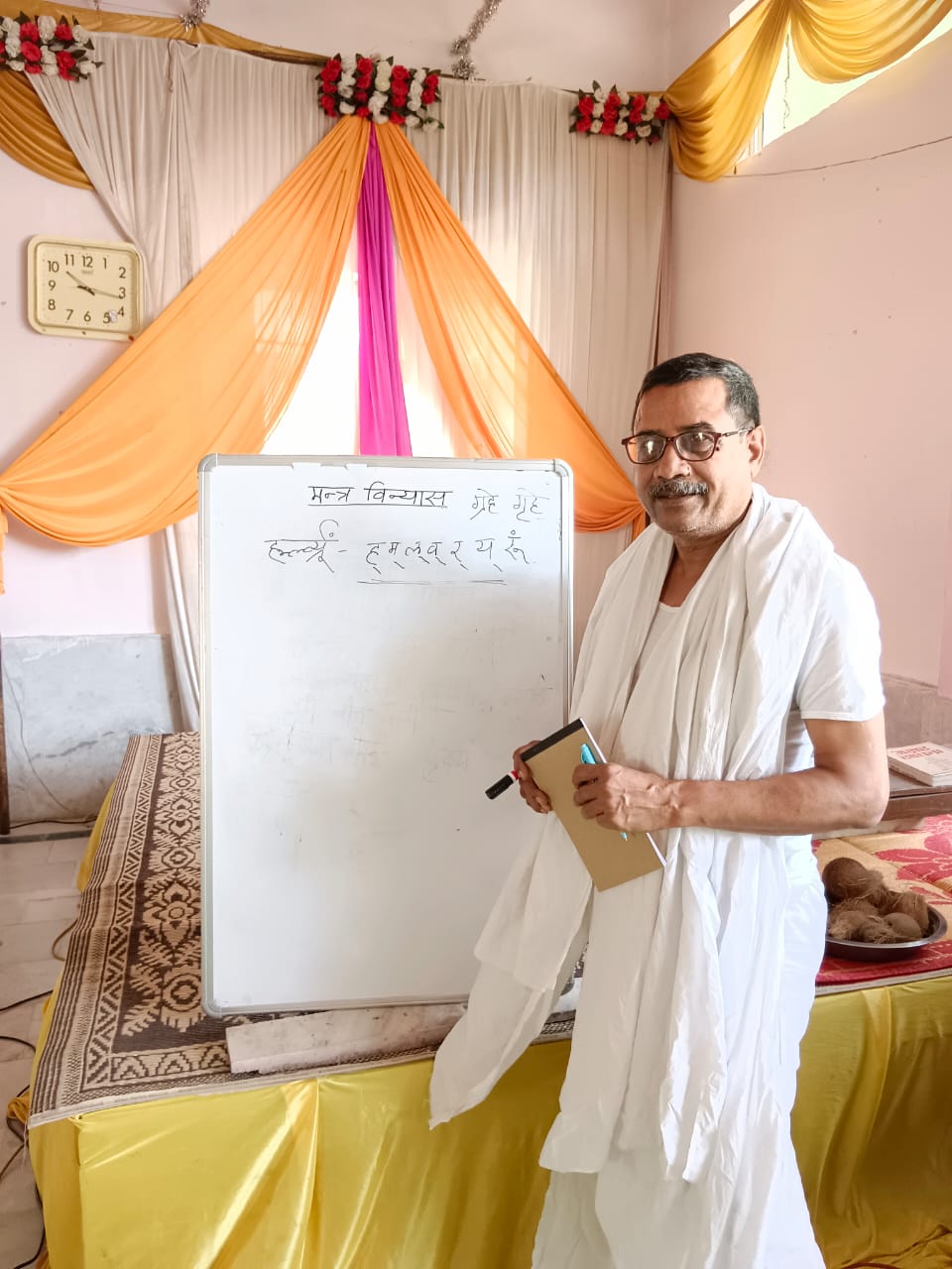 सोनागिर। अखिल भारतवर्षीय दिगंबर जैन शास्त्री परिषद के द्वारा श्री दिगंबर जैन सिद्धक्षेत्र सोनागिर में आयोजित शिक्षण प्रशिक्षण शिविर में दूसरे दिन प्रातः भगवान चंद्रप्रभु के प्रांगण में आर्यिका लक्ष्मी भूषण माताजी के द्वारा ध्यान कराया गया। तत्पश्चात प्रातः कालीन सत्र में ब्रह्मचारी जय कुमार निशांत टीकमगढ़ द्वारा अक्षर विन्यास अक्षर, बीजाक्षर, पिंडाक्षर का विशद विवेचन किया गया। आर्यिका स्वस्ति भूषण माताजी ने ज्ञान के माध्यम से जीवन के उत्थान, सदाचरण, बुराई से बचाव, अज्ञान, मोह का अंधेरा हटाकर, सुख शांति की वृद्धि करते हुए, मोक्षमार्ग की क्षमता पात्रता एवं योग्यता का हेतु बताया। ज्ञान आते ही दृष्टिकोण बदल जाता है, क्षमता बढ़ जाती है, जीने का लक्ष्य एवं उसकी दिशा बदल जाती है। दोपहर कालीन सत्र में ब्रह्मचारी निशांत भैया ने अक्षरों का विन्यास बताते हुए कहा मंत्र का प्रयोग चार प्रकार से कर सकते हैं ..1. बैखरी, 2. उपांशु. 3. पश्य, 4. परा । तदनुसार णमोकार मंत्र के उच्चारण एवं ध्यान से प्राणायाम विधि द्वारा प्रयोग करने पर शरीर की आंतरिक शुद्धि के साथ पांच इंद्रीय एवं बलों को पुष्ट किया जाता है, जिससे हमारी शारीरिक क्षमता के साथ आध्यात्मिक एवं दार्शनिक योग्यता का भी लक्ष्य निश्चित होता है।