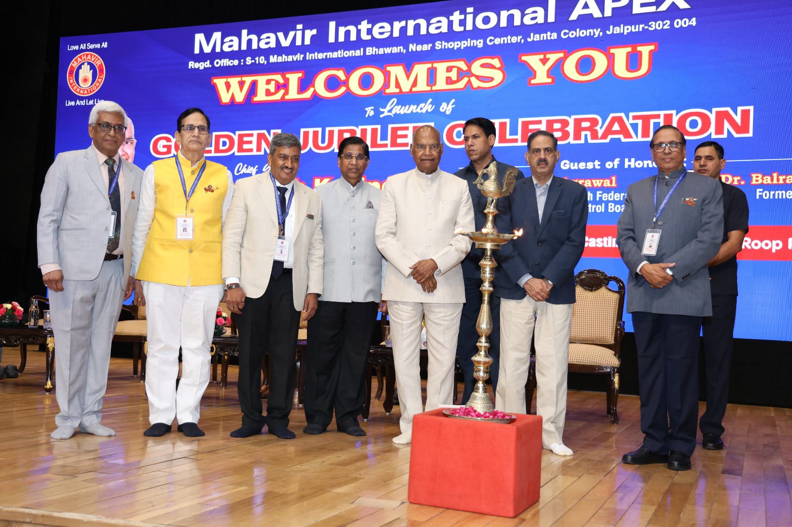 संस्था की सेवा गतिविधियों एवं संगठन संरचना से प्रभावित होकर उन्होंने संस्था से जुड़ने का प्रस्ताव रखा – अन्तर्राष्ट्रीय अध्यक्ष वीर अनिल जैन ने संस्था की लेपल पिन लगाकर श्री कोविंद जी को सदस्यता प्रदान की। समारोह के विशिष्ठ अतिथि के रूप में डॉ. अशोक अग्रवाल, प्रेसिडेंट इंटरनेशनल वैश्य फेडरेशन एवं मेंबर सेंट्रल पोल्युशन कंट्रोल बोर्ड, भारत सरकार तथा डॉ. बलराम भार्गव, डायरेक्टर जनरल (से.नि.) ICMR थे। दीपप्रज्वलन एवं प्रार्थना के बाद स्वर्ण जयंती समारोह के अवसर पर केक का प्रस्तुतीकरण, महावीर इंटरनेशनल वर्चुअल सेंटर-‘मिसरी’ एवं स्वर्ण जयंती “Logo” का लोकार्पण कर शुभारंभ किया। अन्तर्राष्ट्रीय महासचिव वीर अशोक गोयल ने सभी गणमान्य अतिथियों का स्वागत किया एवं अन्तर्राष्ट्रीय अध्यक्ष वीर सीए अनिल जैन ने कार्यक्रम की थीम और विजन साझा किया। महामहिम निवर्तमान राष्ट्रपति श्री राम नाथ कोविंद की गरिमामय उपस्थिति में विशिष्ठ अतिथि डॉ. अशोक अग्रवाल तथा डॉ. बलराम भार्गव द्वारा संस्था द्वारा प्रकाशित एवं वीर सपन कुमार वर्धन द्वारा रचित बुक “The essence within decoding the purpose of existence” का विमोचन किया।