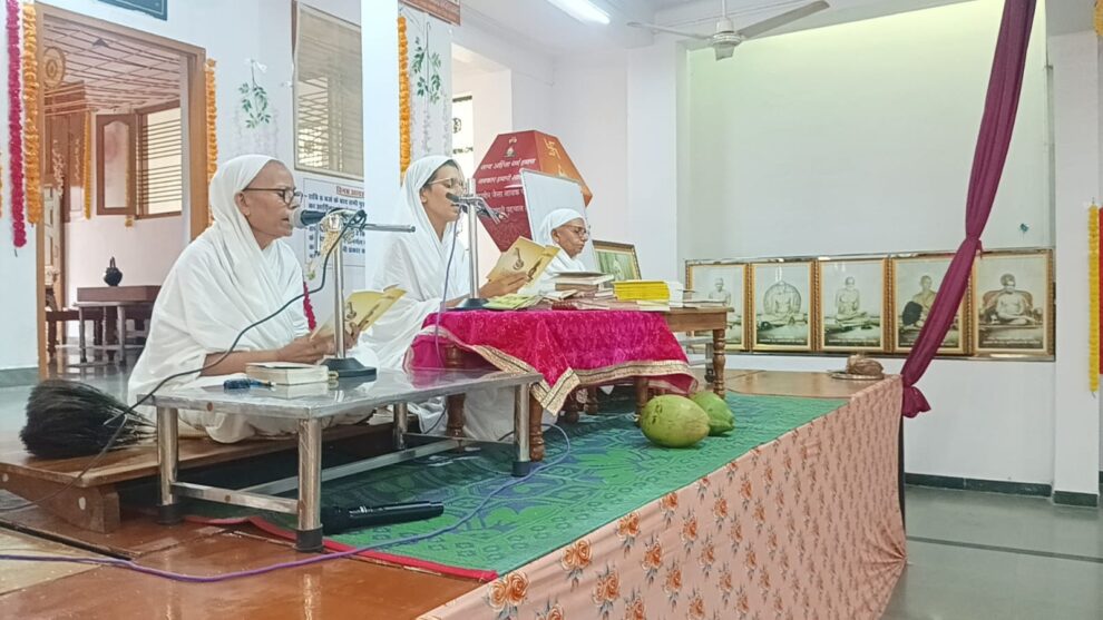 खैरवाड़ा। स्थानीय नेमिनाथ मंदिर में 25 समवशरण वाला भव्य कल्पद्रुम महामंडल विधान का आयोजन किया जाएगा। मंदिर में आर्यिका सुप्रज्ञमति माताजी ससंघ का चातुर्मास चल रहा है। माताजी के सानिध्य में 11 दिवसीय कल्पद्रुम महामंडल विधान 18 से 28 सितंबर तक होगा। इस भव्य और ऐतिहासिक विधान में 25 समवशरण बनेंगे। दशा हुमड़ समाज खैरवाड़ा के संरक्षक बाबूलाल सर्राफ, अध्यक्ष वीरेंद्र वखारिया, मंत्री पंकज शाह, उपाध्यक्ष विपिन वखारिया, चातुर्मास कमेटी के अध्यक्ष नरेंद्र पंचोली और मंत्री कुलदीप जैन ने बताया कि विधान के लिए पात्र चयन का कार्यक्रम शांतिनाथ मंदिर के सभागार में हुआ। कार्यक्रम में सर्वप्रथम मंगलाचरण हुआ। उसके बाद पूर्वाचार्यों के फोटो अनावरण किया गया। उसका लाभ गुणवंत फड़िया परिवार को मिला। पाद प्रक्षालन का लाभ अरविंद वोरा परिवार को मिला और शास्त्रजी भेंट का सौभाग्य दशा हुमड समाज के अध्यक्ष वीरेंद्र वखारिया परिवार को मिला।