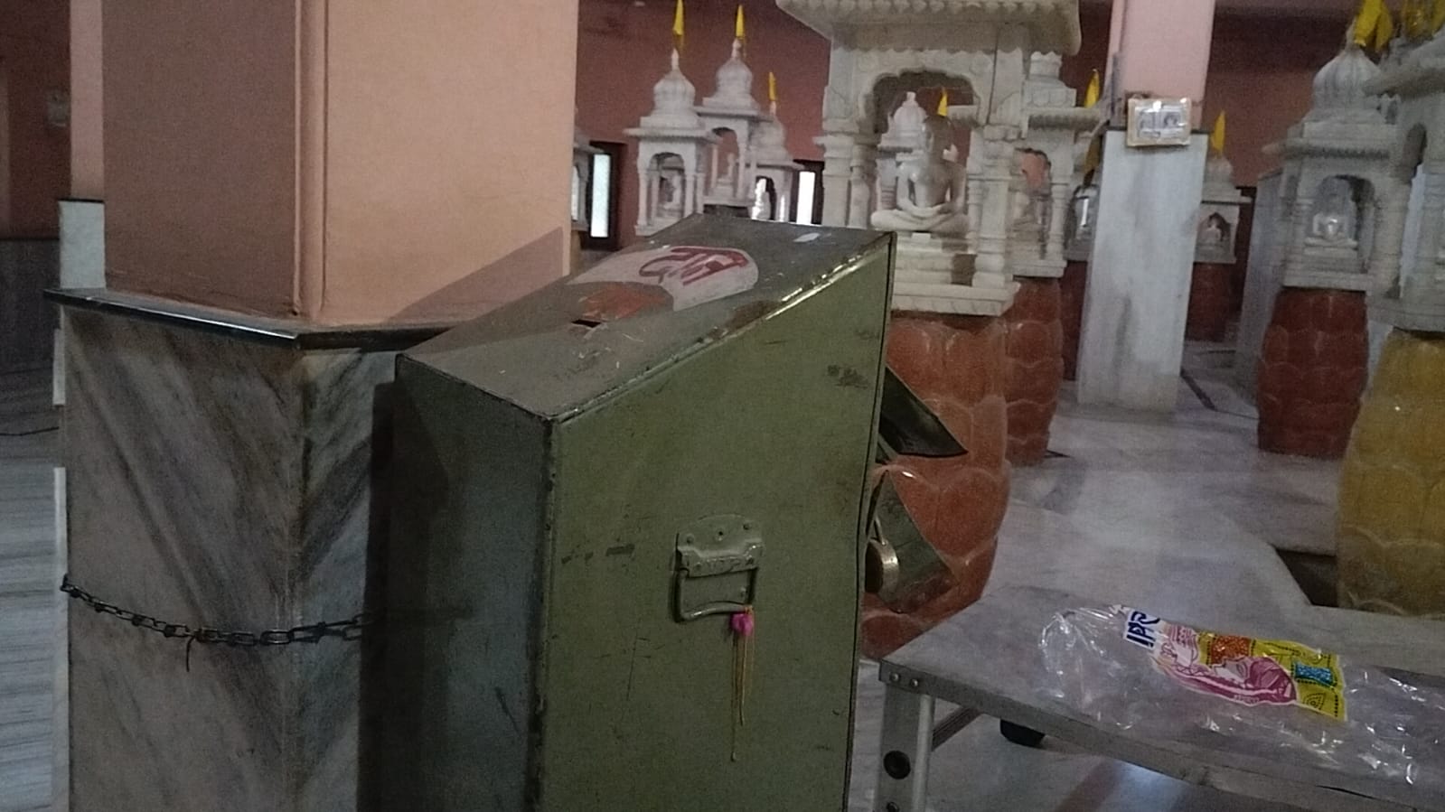 बताया जाता है कि दान पात्र काफी दिनों से खोला नहीं गया था, जिससे उसमें अधिक राशि होने की संभावना व्यक्त की जा रही है। गनीमत यह रही कि नंदीश्वर जैन मंदिर में पाषाण की मूर्तियों व दानपात्र और शास्त्रों के अलावा अन्य कोई कीमती चीज नहीं थी।
