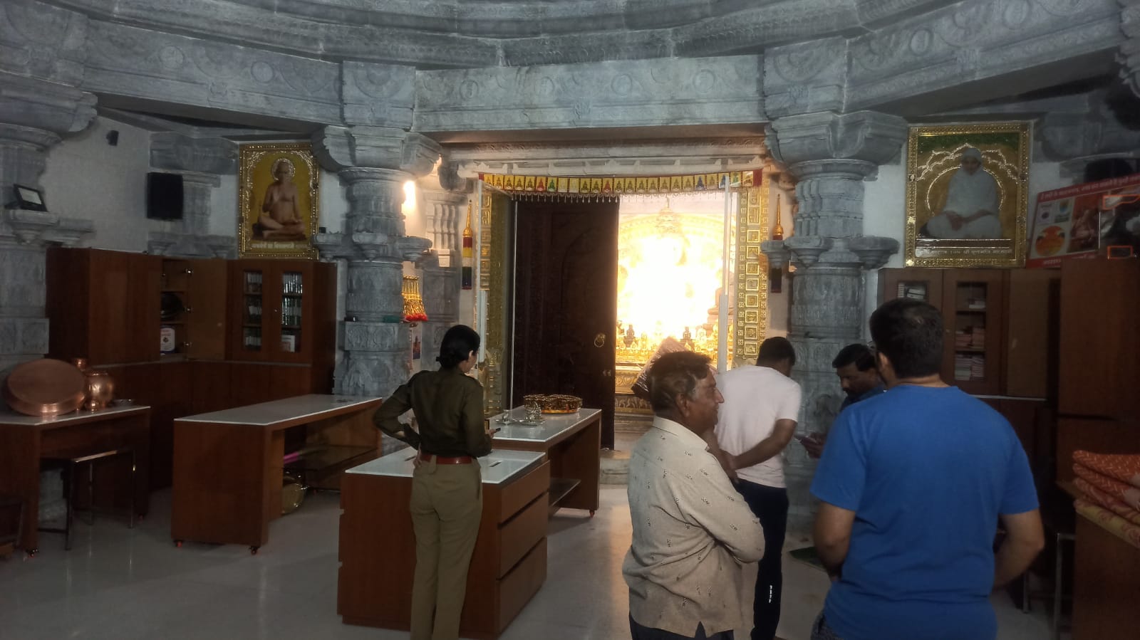 मनावर के चैतन्यधाम महावीर दिगंबर जैन मंदिर में रविवार की रात को अज्ञात चोर लाखों रुपए मूल्य के चांदी की वस्तुएं और दान पेटी चुरा ले गए। पुलिस एक्सपर्ट और डॉग स्क्वॉड की टीम जांच में जुटी। चोर एक घंटे तक मंदिर में चोरी करते रहे। पुलिस ने क्षेत्र में नाकाबंदी कर चोरों की तलाश शुरू कर दी है। पढ़िए धामनोद से दीपक प्रधान की यह खबर…