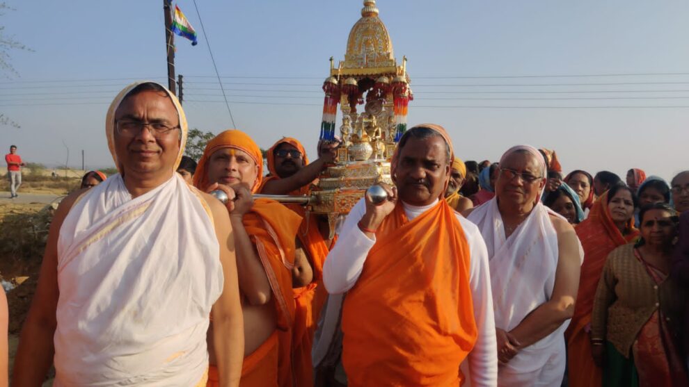 श्री जी को पालकी में विराजमानकर सम्पूर्ण परकोटे में भृमण कराया गया । साधर्मी बन्धु पीत वस्त्र, मुकुट हार धारण कर इंद्र के रूप में पालकी को अपने कंधों पर लेकर चल रहे थे । श्री जी की विमान शोभायात्रा में युवा साथी चवर लेकर, भक्तिभाव पूर्वक नृत्य कर रहे थे । श्री जी की विमान शोभायात्रा मुख्य मंदिर जी से प्रारंभ होकर कार्यक्रम स्थल पहुची ।
