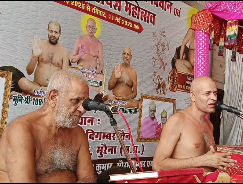 मुरैना। मुनिश्री विलोकसागर महाराज ने धर्म सभा को संबोधित करते हुए कहा कि तीर्थंकर भगवान महावीर स्वामी के व्यक्तित्व से प्रत्येक व्यक्ति को परिचित होना चाहिए। भगवान महावीर कोई साधारण पुरुष नहीं थे, उन्होंने अपने तपोबल एवं सिद्धांतों का पालनकर संयम के मार्ग को अपनाते हुए मोक्ष प्राप्त किया था। वे सदैव सत्य अहिंसा, शाकाहार एवं जियो और जीने दो का उपदेश देकर प्राणी मात्र को स्वयं के कल्याण का मार्ग बताते थे। नगर के बड़े जैन मंदिर में विराजमान मुनिराज विलोक सागर एवं विबोध सागर महाराज के पावन सानिध्य में गुरुवार 22 मई को शाम 7 से 8 बजे तक बड़े जैन मंदिर में तीर्थंकर महावीर प्रश्नोत्तरी प्रतियोगिता का आयोजन रखा गया है।