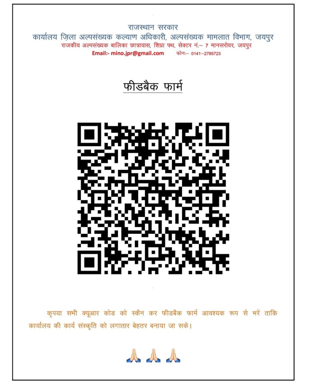 जयपुर। अल्पसंख्यक मामलात विभाग जयपुर ने सरकारी सेवाओं में पारदर्शिता और जवाबदेही सुनिश्चित करने की दिशा में एक नई पहल शुरू की है। जिला अल्पसंख्यक कल्याण अधिकारी अभिषेक सिद्ध द्वारा “कार्मिक सेवा फीडबैक प्रणाली” प्रारंभ की गई है, जिसके माध्यम से नागरिक, अधिकारी या कर्मचारी कार्यालय में कार्यरत कार्मिकों की सेवाओं पर अपना फीडबैक दे सकेंगे।