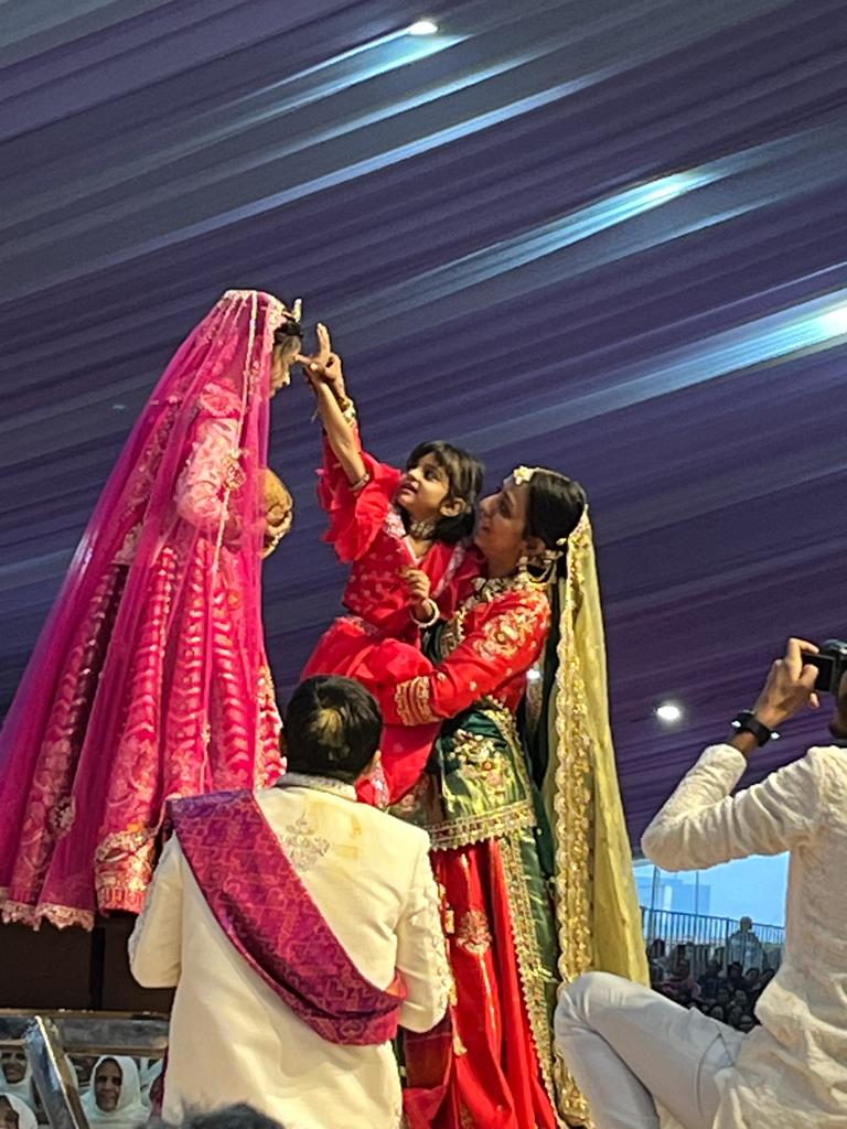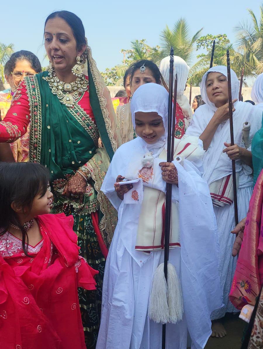 देवांशी दीक्षा विधि के बाद जब साध्वी वेश में पंडाल में आई तो उसको चतुर्विद संघ ने उसको अक्षत से वधामणा किया तो पंडाल विरति धर्म व संयम धर्म की जय हो के शंखनाद से गूंज उठा । देवांशी की छोटी बहन ने भी उसका वधामणा कर बहन को संयम मार्ग के लिए रवाना किया तो पंडाल में एक ऐसा मार्मिक दृश्य बना और सभी की आँखे भर आईं । नूतन साध्वी जी की गुरुमाता साध्वी श्री प्रस्मिताश्रीजी होगी । ओगा देने की विनती के पूर्व उसके दादा मोहनभाई व पिता धनेश संघवी ने देवांशी को सांसारिक जीवन मे अंतिम बार लाड़ लड़ाया व खुशी के बहते अश्रुओं से उसके संयम मार्ग की उज्जवलता का आशीर्वाद दिया ।