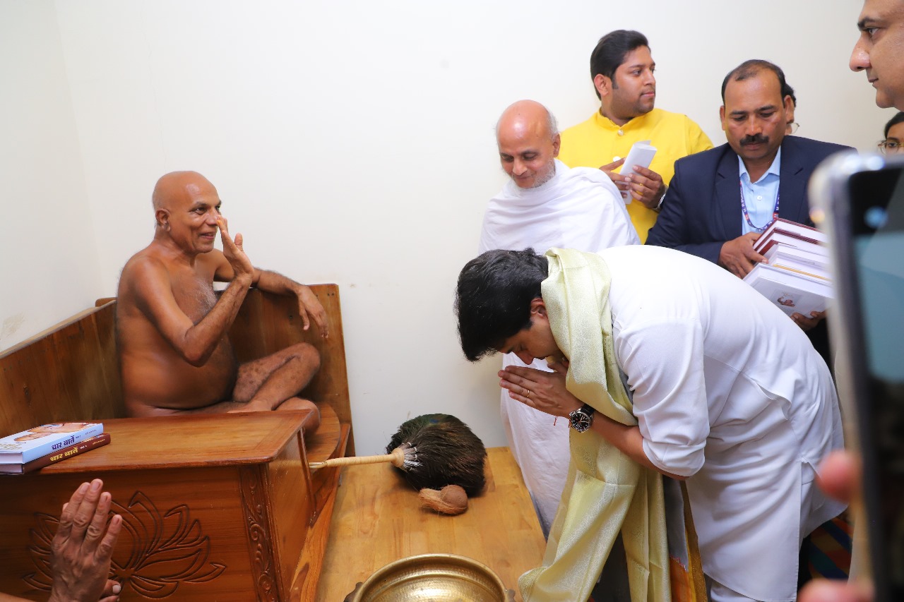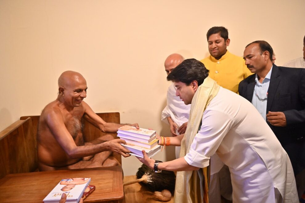 जिनबिम्ब पंचकल्याणक महा महोत्सव में गुरुवार को केंद्रीय मंत्री ज्योतिरादित्य सिंधिया ने मुनिश्री प्रमाणसागर जी महाराज ससंघ के दर्शन किए। उनका आशीर्वाद प्राप्त किया और उनसे साहित्य प्राप्त किया। भोपाल से पढ़िए राजेश जैन दद्दू की यह खबर…