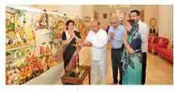 इंदौर। कर्नाटक के राज्यपाल थावरचंद गहलोत ने बेंगलुरु के राजभवन में आयोजित समारोह में 50 फीट लंबी पेंटिंग का अनावरण किया। यह पेंटिंग एमए फाइन आर्ट्स गोल्ड मेडलिस्ट पुष्पा पांड्या द्वारा बनाई गई, जिसमें उन्होंने आचार्य विद्यासागरजी महाराज के गहन विचारों और उनके जीवन के महत्वपूर्ण पलों को दर्शाया है। समारोह में सुरेंद्र हेगड़े, अनिता हेगड़े, रजत पांड्या (फाउंडर एंड सीईओ, फौनाटेक) मौजूद थे।