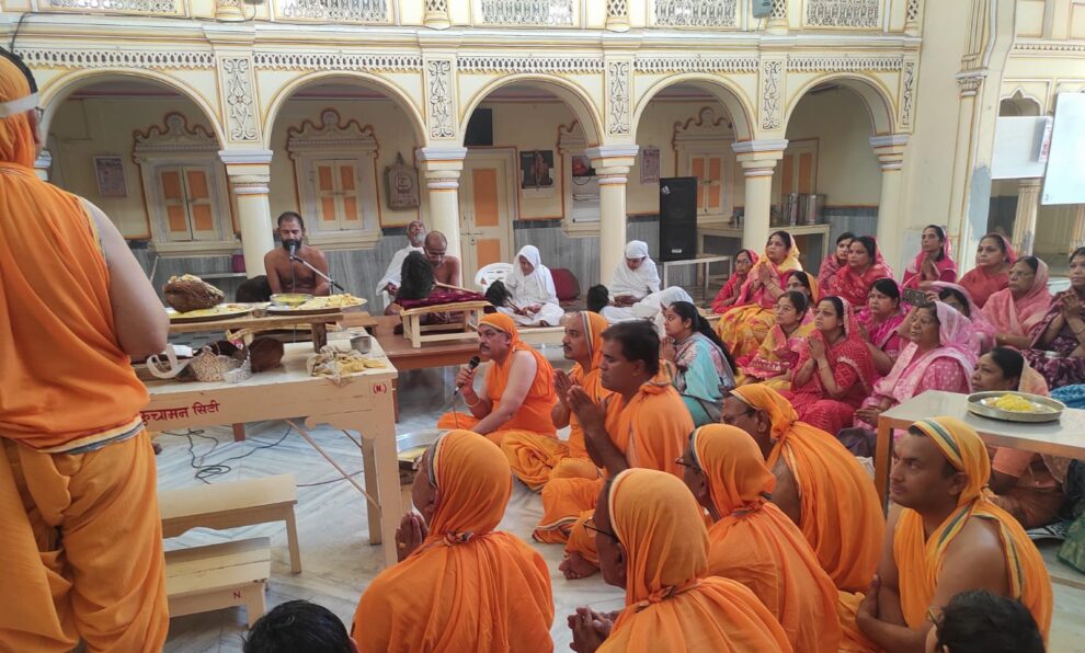 कुचामन सिटी। आचार्य विशुद्ध सागर जी महाराज के शिष्य उपाध्याय मुनि श्री विकसंत सागर जी महाराज के सानिध्य में नागौरी नसियाजी, सब्जी मंडी में विश्व शांति की मंगल कामना के साथ भव्य कलशाभिषेक एवं शांतिधारा की गई। इस पावन अवसर पर मुनिश्री ने मंत्रोच्चार के साथ अर्घ्य बोलकर शांतिधारा कराई तथा समस्त विश्व में शांति, सद्भाव और कल्याण की भावना व्यक्त की। किरण झांझरी के अनुसार शांतिधारा का पुण्यार्जन करने का सौभाग्य विमला देवी, नरेश, सविता, आदिश एवं डॉ. आस्था झांझरी परिवार को प्राप्त हुआ।