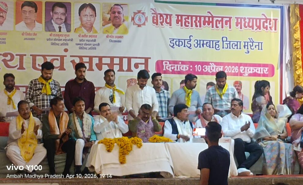 वैश्य महासम्मेलन मध्यप्रदेश इकाई की अंबाह तहसील का शपथ ग्रहण समारोह जैन बगीची में किया गया। कार्यक्रम में प्रदेश अध्यक्ष सुधीर अग्रवाल सहित गणमान्य अतिथि उपस्थित रहे। अंबाह से पढ़िए, अजय जैन की यह रिपोर्ट…