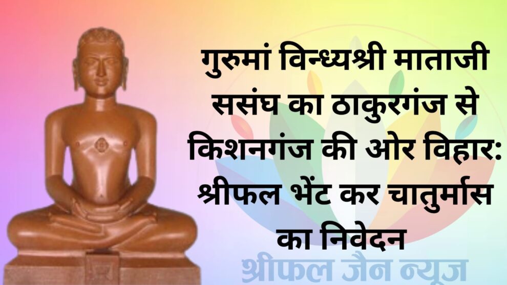 गुवाहाटी। परम पूज्य राष्ट्रसंत गणाचार्य 108 श्री विराग सागर महामुनिराज की परम विदुषी शिष्या, जिनशासन सूर्या, गणिनी पद विभूषिता, मां सरस्वती की अभिव्यक्ति स्वरुपा, आर्यिका शिरोमणि गुरुमां 105 विन्ध्यश्री माताजी ससंघ का अनवरत विहार चल रहा है। विहार क्रम में ससंघ का आज ठाकुरगंज से किशनगंज की ओर विहार हुआ। आपको बता दें मंगलवार को सकल दिगम्बर जैन समाज ठाकुरगंज की ओर से राष्ट्रसंत 108 श्री विराग सागर महामुनिराज का 61वां अवतरण दिवस एवं गुरु मां 105 विन्ध्यश्री माताजी का 12 वां गणिनी पद दिवस बहुत ही धूमधाम से मनाया गया जिसमें स्थानीय समाज, गुरू मां संघ संयोजक प्रदीप जी झांझरी, डीमापुर एवं गुरु मां विशेष भक्त धूबड़ी समाज के उपाध्यक्ष अजय कुमार कानूगा के अतिरिक्त सिलचर, किशनगंज आदि विभिन्न स्थानों से पधारे लोग भी शामिल थे।