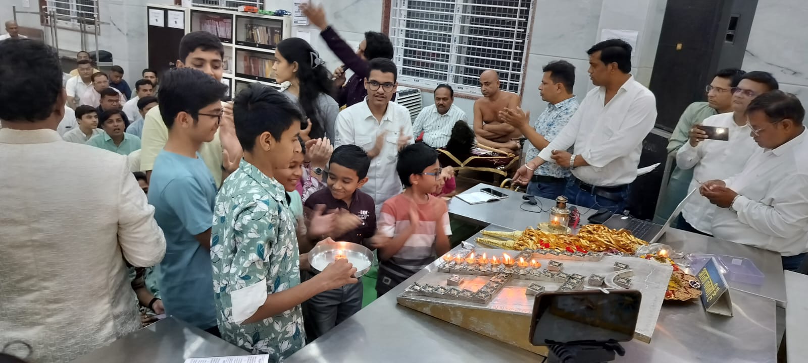 जो 48 दीपकों के साथ मुनिश्री पूज्यसागर जी के मुखारबिंद से मंत्रोच्चार द्वारा की गई। तत्पश्चात सभी लोगों द्वारा महाआरती बड़ी भक्ति भाव से की गई। कार्यक्रम में फेडरेशन के राष्ट्रीय अध्यक्ष मनोहर झांझरी, वार्ड 50 पार्षद राजीव जैन, डीके जैन केच, जेनेश झांझरी, सुदीप जैन, अनिल जेनको, अजय जैन सांसद प्रतिनिधि, जीतेन्द्र जैन, भरत जैन, श्रीपाल जैन, विनोद जैन, रविंद्र जैन, मनीष जैन उपस्थित थे।