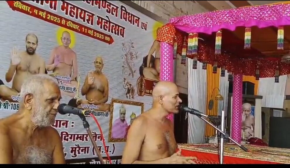 श्री सिद्धचक्र महामंडल विधान के दौरान बड़े जैन मंदिर मुरैना में चल रहा है। मुनिश्री विलोकसागर महाराज ने श्री सिद्धचक्र महामंडल विधान के दौरान बड़े जैन मंदिर मुरैना में धर्मसभा को संबोधित कर रहे हैं। विधान के प्रथम दिन 8, द्वितीय दिन 16, तृतीय दिन 32, चतुर्थ दिन 64, पांचवंे दिन 128, छठवें दिन 256, सातवें दिन 512 एवं अंतिम दिन 1024 अर्घ्य समर्पित किए जाएंगे। मुरैना से पढ़िए, मनोज जैन नायक की यह खबर…