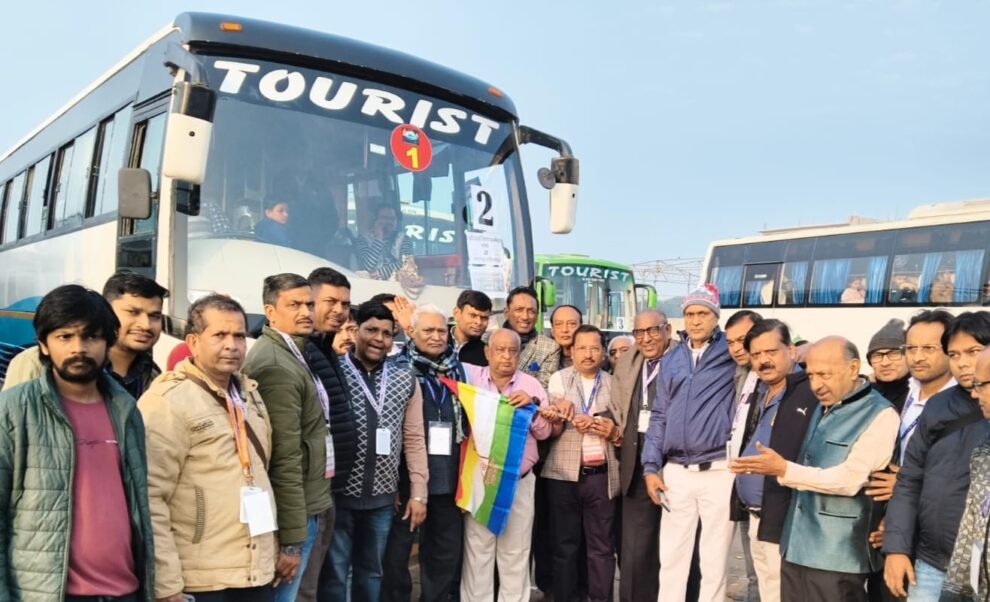 श्री अयोध्या बनारस तीर्थयात्रा महोत्सव के द्वितीय दिन 621 तीर्थ यात्रियों के संघ ने 12 बसों के माध्यम से अयोध्या से भगवान संभवनाथ स्वामी की जन्म स्थली श्रावस्ती रवाना हुए। मुरैना के स्वतंत्र पत्रकार मनोज जैन नायक एवं वीरेंद्रकुमार जैन (मंदिर वाले) आगरा ने आयोजकों एवं अन्य श्रावक श्रेष्ठियों के साथ सभी 12 बसों को पंचरंगीन ध्वजा दिखाकर रवाना किया। श्रावस्ती पहुंचकर सभी बंधुओं ने पूजा अर्चना, वंदना की। सभी ने पूर्ण श्रद्धा एवं भक्ति के साथ वहां पर समय व्यतीत किया। शाम को भगवान धर्मनाथ स्वामी की जन्म स्थली धर्मपुरी पहुंचकर पूज्यश्री के चरणों में श्रीफल अर्पित कर महाआरती की। महाआरती के समय यात्रा समूह के जयकारों से समूचा आभामंडप गुंजायमान हो उठा। महाआरती के बाद समूचा संघ बनारस की यात्रा पर रवाना हुआ।