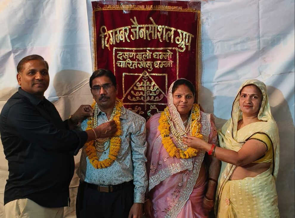 अंबाह। वर्तमान में जब पारिवारिक कार्यक्रमों में फिजूलखर्ची आम बात हो गई है। ऐसे में दिगंबर जैन सोशल ग्रुप परिवार ने एक नई और अनुकरणीय परंपरा की शुरुआत की है। समाज के सदस्य अब अपने पारिवारिक उत्सव वैवाहिक वर्षगांठ, जन्मदिवस आदि को धर्म और सेवा के साथ जोड़ते हुए श्री भक्तांबर पाठ, दीप अर्चना एवं सेवा कार्यों के माध्यम से मनाने लगे हैं। यह पहल ग्रुप अध्यक्ष अमित जैन टकसारी एवं कुलदीप जैन महामंत्री के मार्गदर्शन में प्रारंभ की गई है। जिसका उद्देश्य समाज में सादगी, आध्यात्मिकता और सेवा भावना को बढ़ावा देना है। इस पहल के अंतर्गत परेड जैन मंदिरमें दो प्रतिष्ठित जैन दंपतियों मनोज कुमार जैन और बबीता जैन तथा रामप्रकाश जैन तथा लक्ष्मी जैन की वैवाहिक वर्षगांठ पर श्री भक्तामर महापाठ का आयोजन किया गया। कार्यक्रम में समाज के सभी सदस्य सपरिवार शामिल हुए और पुण्य लाभ अर्जित किया। इस दौरान दीप अर्चना और सामूहिक प्रार्थना के साथ वातावरण भक्ति और श्रद्धा से सराबोर हो गया। संतोष जैन ने बताया कि यह पहल समाज में धार्मिकता के साथ-साथ एकता, सरलता और समर्पण का प्रतीक बन रही है। जिसे समाज के अन्य वर्गों द्वारा भी अपनाए जाने की आवश्यकता है।