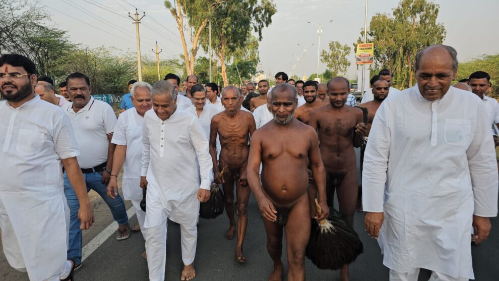 किशनगढ़ ।आचार्य सुनील सागर जी महाराज के किशनगढ़ में ऐतिहासिक भव्य मंगल प्रवेश पर एक मार्मिक एवं सामाजिक संदेश,उन लोगों के लिए जो बिना काम के भी व्यस्त हैं। जिसके पास इस दुनिया के सारे वैभव है ।जैन गौरव अशोक पाटनी गुरुओं के साथ पैदल चलने में खुश है और गुरु भक्ति में मस्त है।एक बात जो हमें सीखनी चाहिए।जिस नगर का राजा या सेठ स्वयं नंगे पैर कमंडल पकड़कर 5 किलोमीटर का मंगल विहार साधुओं को करवाता हो तो उस नगर की जनता घरों में कैसे बैठ सकती है।