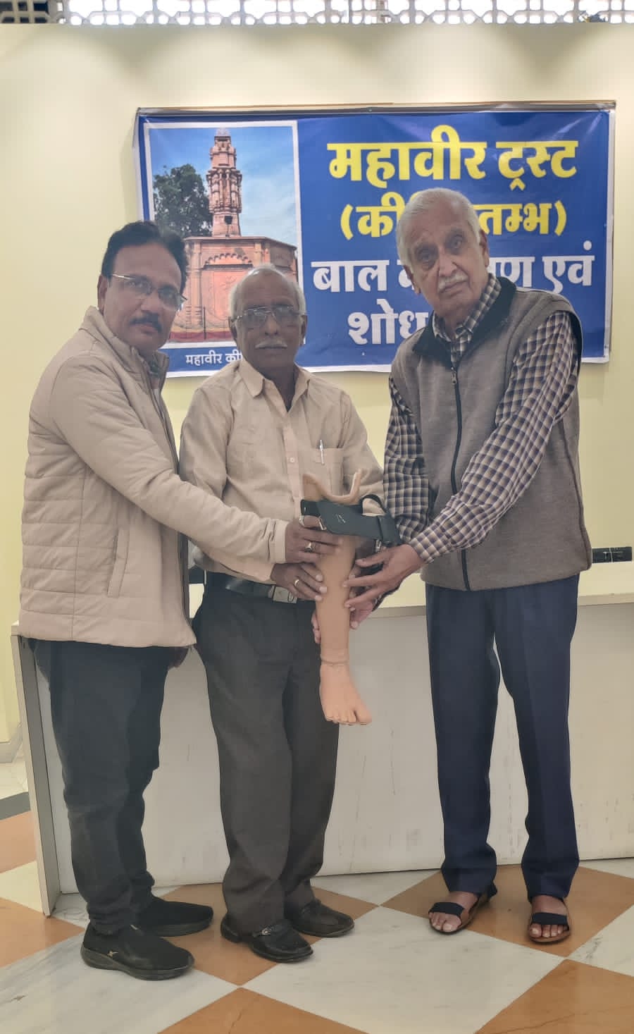 इंदौर। जरूरतमंदों की मदद में अग्रणी और सेवा कार्यों में हमेशा बढ़-चढ़कर हिस्सा लेने वाले समाजसेवियों ने सोमवार को एक दिव्यांग को कृत्रिम पैर प्रदान किया तो उसकी खुशी का ठिकाना नहीं रहा। महावीर ट्रस्ट बाल कल्याण एवं शोध संस्थान केंद्र की ओर से दिव्यांग को यह उपहार मिला। उल्लेखनीय है कि महावीर ट्रस्ट बाल कल्याण एवं शोध संस्थान केंद्र (कीर्ति स्तंभ) में सोमवार को दिगंबर जैन सोशल ग्रुप फेडरेशन के राष्ट्रीय अध्यक्ष मनोहर झांझरी, रीजन सचिव संजय पापडीवाल, प्रबंधक ललित राठौर ने एक दिव्यांग बंधु को कृ़ित्रम पैर जब प्रदान किया तो उसके चेहरे की रौनक देखने लायक थी। यह भी उल्लेख्य है कि महावीर ट्रस्ट वर्षों से निरंतर अपनी शैक्षणिक, पारमार्थिक, रचनात्मक, सामाजिक गतिविधियों को संचालित करते हुए समाज हित में हमेशा अग्रगण्य भूमिका अदा करते आ रहा है। इसमें सकल समाजजनों का सहयोग भी मिलता रहता है।