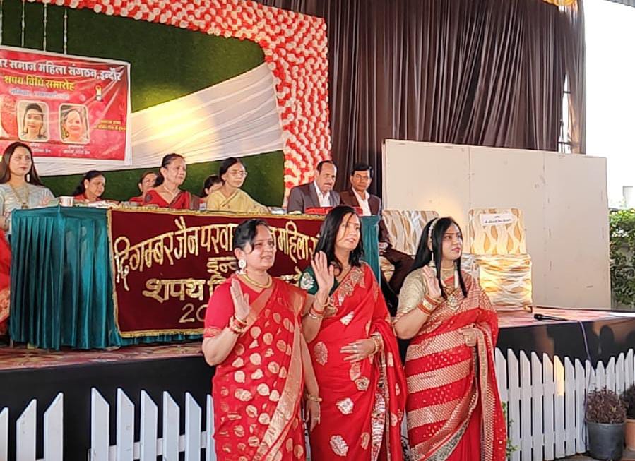 इंदौर। दिगंबर जैन परवार समाज महिला संगठन का शपथ ग्रहण समारोह राजशाही गार्डन में डीएवीवी की कुलपति डॉक्टर रेणु जैन के मुख्य आतिथ्य में संपन्न हुआ। प्रसिद्ध साहित्यकार एवं लेखिका ज्योति जैन ने संगठन की मनोनीत अध्यक्ष मुक्ता राजेश जैन, कार्याध्यक्ष वंदना जैन एवं सचिव सारिका जैन सहित नई कार्यकारिणी एवं सभी सदस्यों को संगठन के सिद्धांत, नियम और नीति के अनुसार अपने कर्तव्य एवं दायित्वों के निर्वहन की शपथ दिलाई। सभी ने ईश्वर को साक्षी मानकर शपथ ली। भिक्षु पुनर्वास केंद्र की संचालक रूपाली जैन, चोइथराम कॉलेज की प्रिंसिपल डॉ. रीता जैन (नायिका) एवं डॉ. अर्पणा जैन विशेष अतिथि थीं।