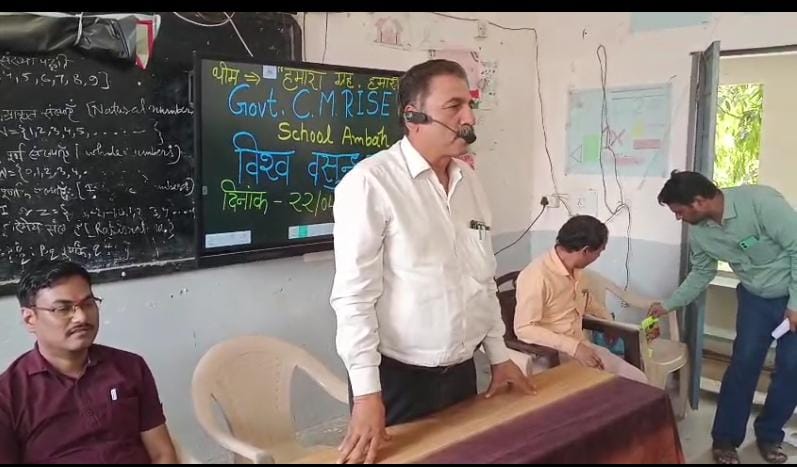 अंबाह/मुरैना। नगर के सीएम राइज स्कूल में विश्व वसुंधरा दिवस एवं गंगा जल संवर्धन अभियान का आयोजन किया गया। इस आयोजन के अंतर्गत छात्र-छात्राओं ने वाद-विवाद, भाषण, चित्रकला, नारा लेखन में बढ़-चढ़कर भाग लिया तथा विजयी छात्रों को प्राचार्य द्वारा पुरस्कृत किया गया। इसी क्रम में विद्यालय की शिक्षिका सोनी तोमर ने कहा कि आप कल्पना करके देखें कि यदि आपको 2 मिनट ऑक्सीजन न मिले तो क्या होगा? सुधीर चौधरी ने कहा कि यदि पृथ्वी को बचाना है तो हमें अपनी आवश्यकताएं सीमित करनी होगी। इसी क्रम में शिवप्रताप भदोरिया ने विश्व पृथ्वी दिवस की शुरुआत कब हुई तथा उसका क्या महत्व है, इस पर अपने विचार रखे। विद्यालय के प्रधानाध्यापक जयकुमार छारी ने जल संरक्षण के महत्व पर प्रकाश डाला तथा प्रत्येक बालक बालिका को अपने घर से ही जल संरक्षण करने के लिए प्रोत्साहित किया। प्राचार्य रामवीर शर्मा द्वारा छात्र-छात्राओं एवं विद्यालय के समस्त स्टाफ को एक-एक पौधा लगाने के लिए संकल्पित किया गया। विद्यालय के विज्ञान शिक्षक दामोदर कुशवाहा द्वारा बच्चों का प्रश्न मंच कराया गया। संचालन एवं आभार प्रदर्शन इको क्लब प्रभारी वीरेंद्र जैन ने किया।