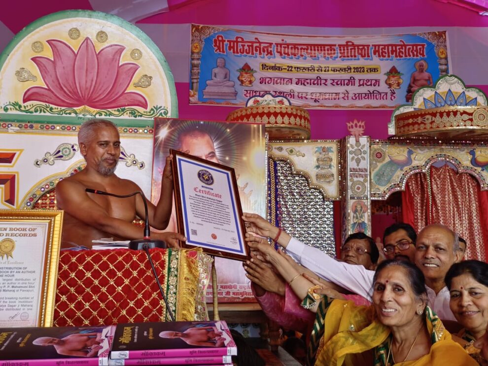 श्री 1008 पंचकल्याणक प्रतिष्ठा महामहोत्सव के पावन अवसर पर ‘गोल्डन बुक ऑफ रिकॉर्ड्स’ (golden book of world records) एवं वर्ल्ड ग्रेटेस्ट रिकॉर्ड (world Greatest record) में इसे दर्ज किया गया। इस दौरान गोल्डन वर्ल्ड रिकॉर्ड्स के एशिया हेड डॉ.मनीष विश्नोई ने (golden world records Asia head dr.manish vishvnoi ) स्वयं आकर गुरुवर के कर कमलों में ससम्मान इसे भेंट किया। इस अवसर पर कोडरमा जैन समाज के मंत्री जैन ललित सेठी,सुरेन्द काला उपस्थित थे।
