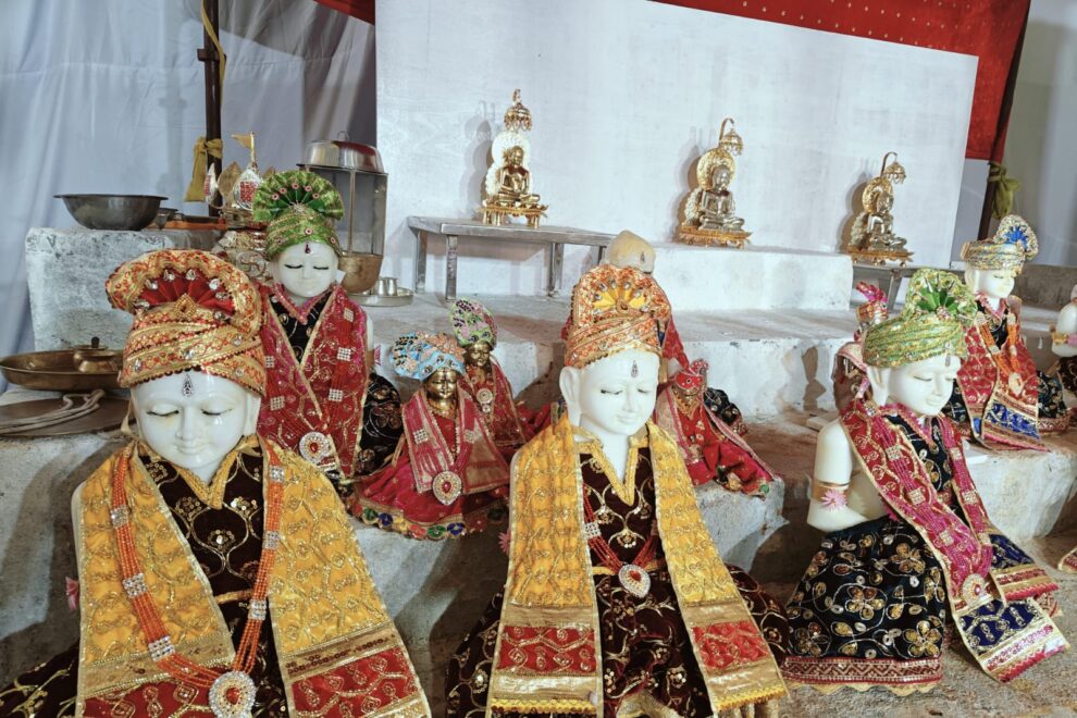 भोपाल। नारियल खेड़ा जैन मंदिर में पाषाण से भगवान बनने के अनुष्ठान में मंगलवार को तप कल्याणक की आराधना हुई। पट्टाचार्य विशुद्ध सागर महाराज के सा संघ सानिध्य में सुबह भगवान जिनेंद्र का अभिषेक और विशेष पूजा अर्चना के साथ अनुष्ठान हुए। महोत्सव के मीडिया प्रभारी अंशुल जैन ने बताया अनुष्ठान के दौरान संपूर्ण जिनालय केसरिया रंग में रंगा हुआ है। आयोजन स्थल पर प्रतीकात्मक अयोध्या नगरी की रचना की गई। जिसमें तप कल्याणक की आराधना के साथ जिन प्रतिमाओं की प्राण प्रतिष्ठा में तप की क्रिया के साथ आचार्य श्री के मुखारविंद से दीक्षा की क्रियाएं दी गई। नमोस्तु नमोस्तु नमोस्तु के स्वरों से संपूर्ण आयोजन स्थल गुंजायमान हो रहा है। जहां एक और युवराज आदि कुमार की बारात में उत्साह और खुशी का माहौल दिखा। वहीं दीक्षा की क्रियाएं देखकर सभी की आंखें नम थीं।