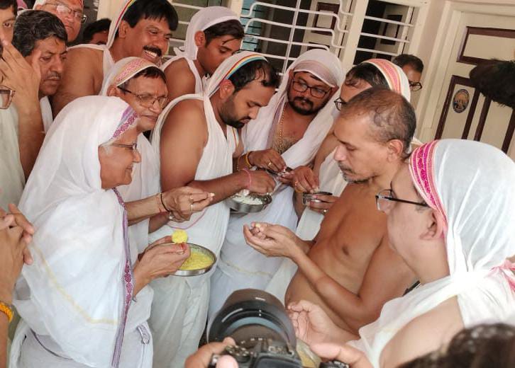 पानी टंकी रोड मंदिर में युवा गण ने विधि पूर्वक मुनि श्री को पड़गाहन किया मुनि श्री ससंघ देव दर्शन के बाद विधि लेकर निकले जहाँ लगभग डेढ़ सौ श्रद्धालु युवा भक्त पड़गाहन कर रहे थे मुनि श्री को 2 बार घूमने के साथ तीसरी चक्कर मे भोजन करने की विधि मिली ।